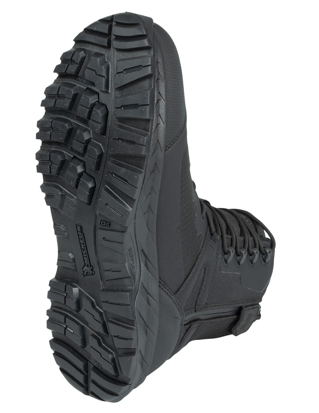 Equipadas con una cremallera lateral YKK para un calce rápido y cómodo, las Ultima Pro 8.0 RC WP son ideales para situaciones donde cada segundo cuenta. La ausencia de metal asegura compatibilidad con escáneres de seguridad, mientras que su construcción ligera y robusta, junto con la suela de goma Michelin antideslizante y la entresuela de EVA, proporcionan un confort duradero y una excelente tracción.
