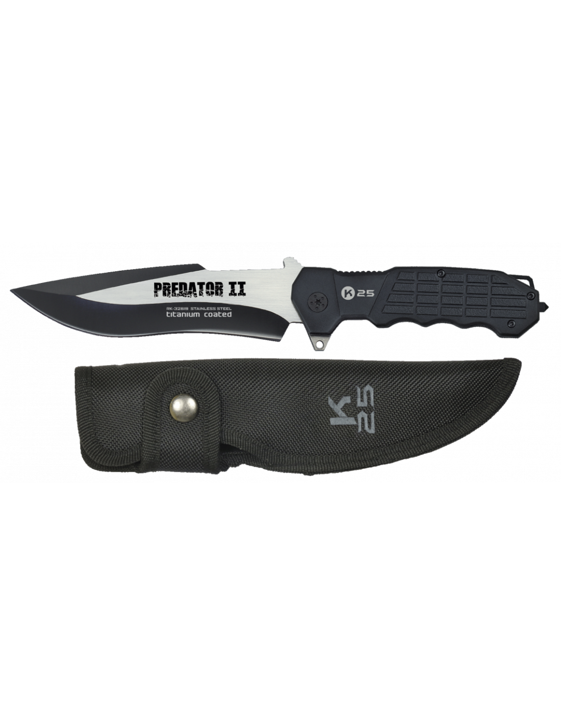 El Cuchillo Táctico PREDATOR II de K25 combina rendimiento excepcional y diseño elegante. Con una hoja de 14 cm, mango ergonómico de aluminio engomado y apertura rápida, es ideal para actividades tácticas y diarias. Su durabilidad, seguridad, y presentación lo convierten en una opción confiable y sofisticada para cualquier coleccionista.