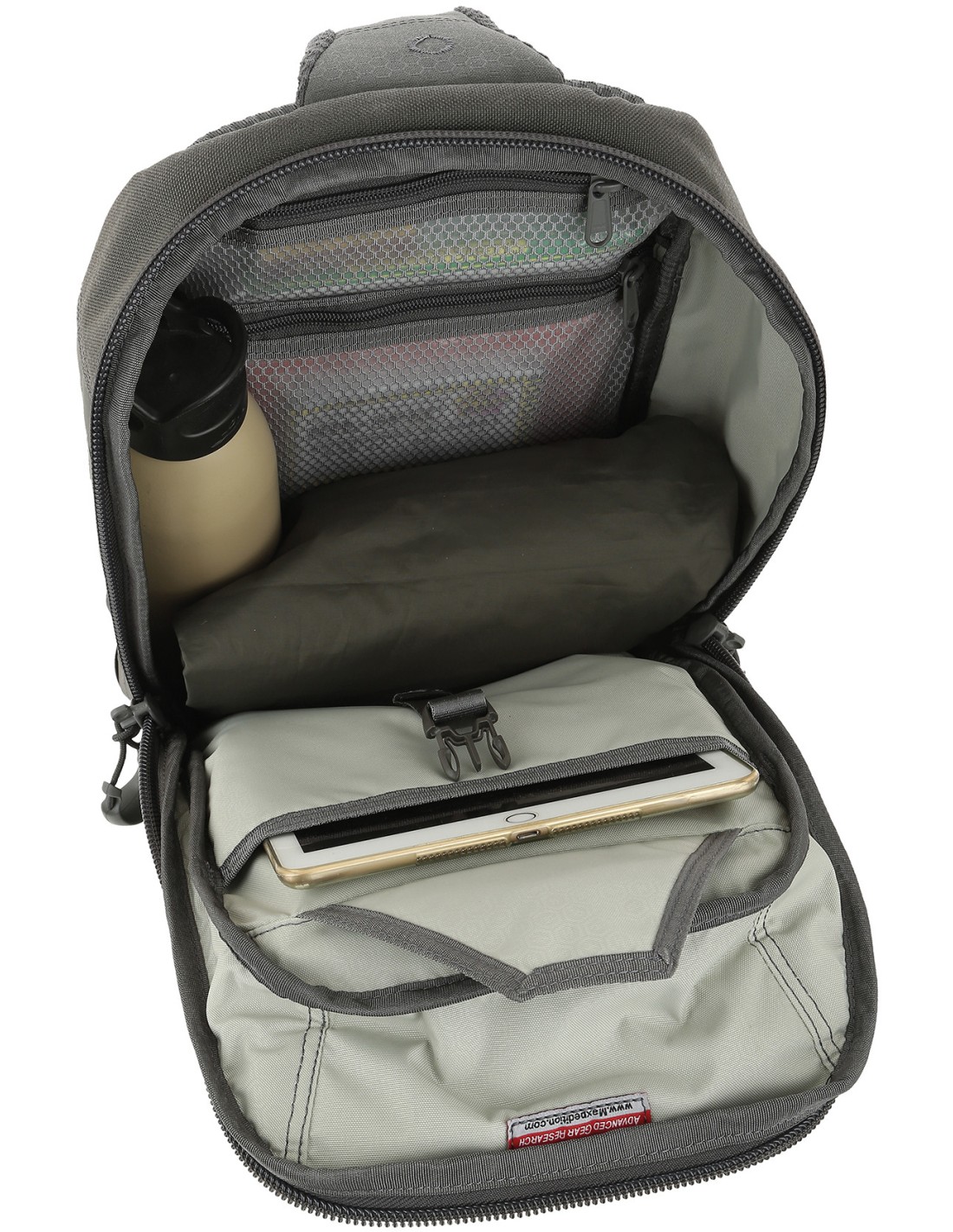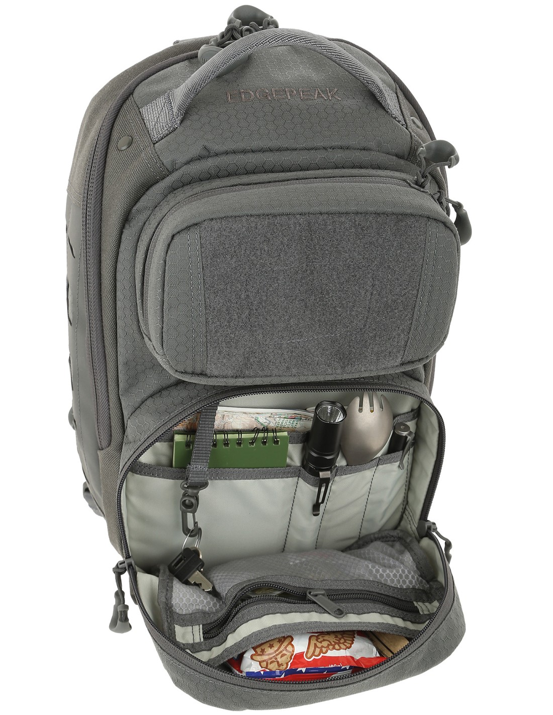 La Maxpedition Edgepeak 2.0 de la serie Advanced Gear Research es una mochila ambidiestra de 18 litros, diseñada para llevarse tanto sobre el hombro izquierdo como derecho. Incluye un acceso rápido al compartimento trasero CCW y un seguro compartimento principal. Fabricada con nylon Hex Ripstop de 500 deniers y nylon 1000 deniers con revestimiento de PU y teflón para resistencia adicional.